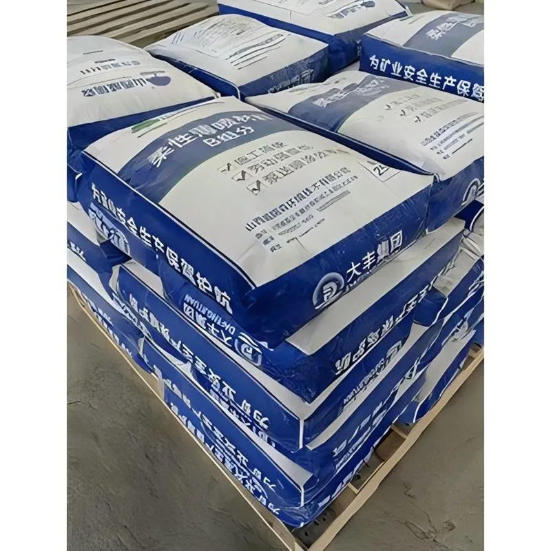 Тонкослое напыляемое герметизирующее покрытие представляет собой композитную суспензию на основе смолы, образованную путем смешивания неорганических порошковых вяжущих материалов с органическим пластифицированным основным клеящим раствором и определенными добавками в соответствии с требованиями. Состоит из двух компонентов: водного полимерного раствора (жидкий компонент) и неорганического порошкового материала (сухой компонент), упакованных раздельно. С помощью специального насоса и распылительной головки с пневматической подачей суспензия тонкослойного покрытия распыляется и под высоким давлением связывается с поверхностью горной выработки, образуя специальный защитный слой поверхностного упрочнения. Продукт обладает такими преимуществами, как отсутствие отскока при напылении, отсутствие пылеобразования, быстрое время отверждения напыленного слоя, высокая адгезионная прочность, высокое сопротивление растяжению, отличная деформируемость, абсолютная огнестойкость и антистатические свойства, практическое отсутствие термореакции и высокая безопасность применения.